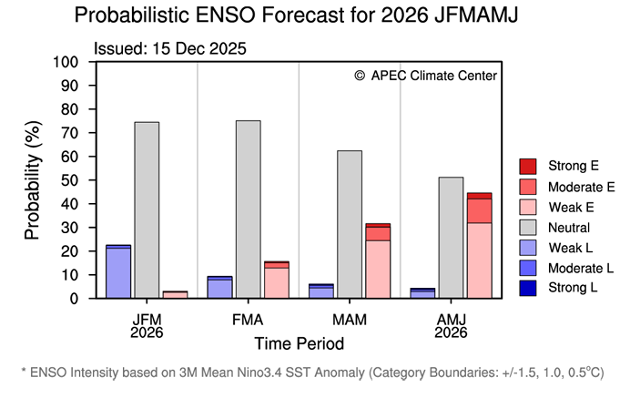 Figura 2: Previsão probabilística de ENOS do APEC Climate Center. Fonte: APEC Climate Center.